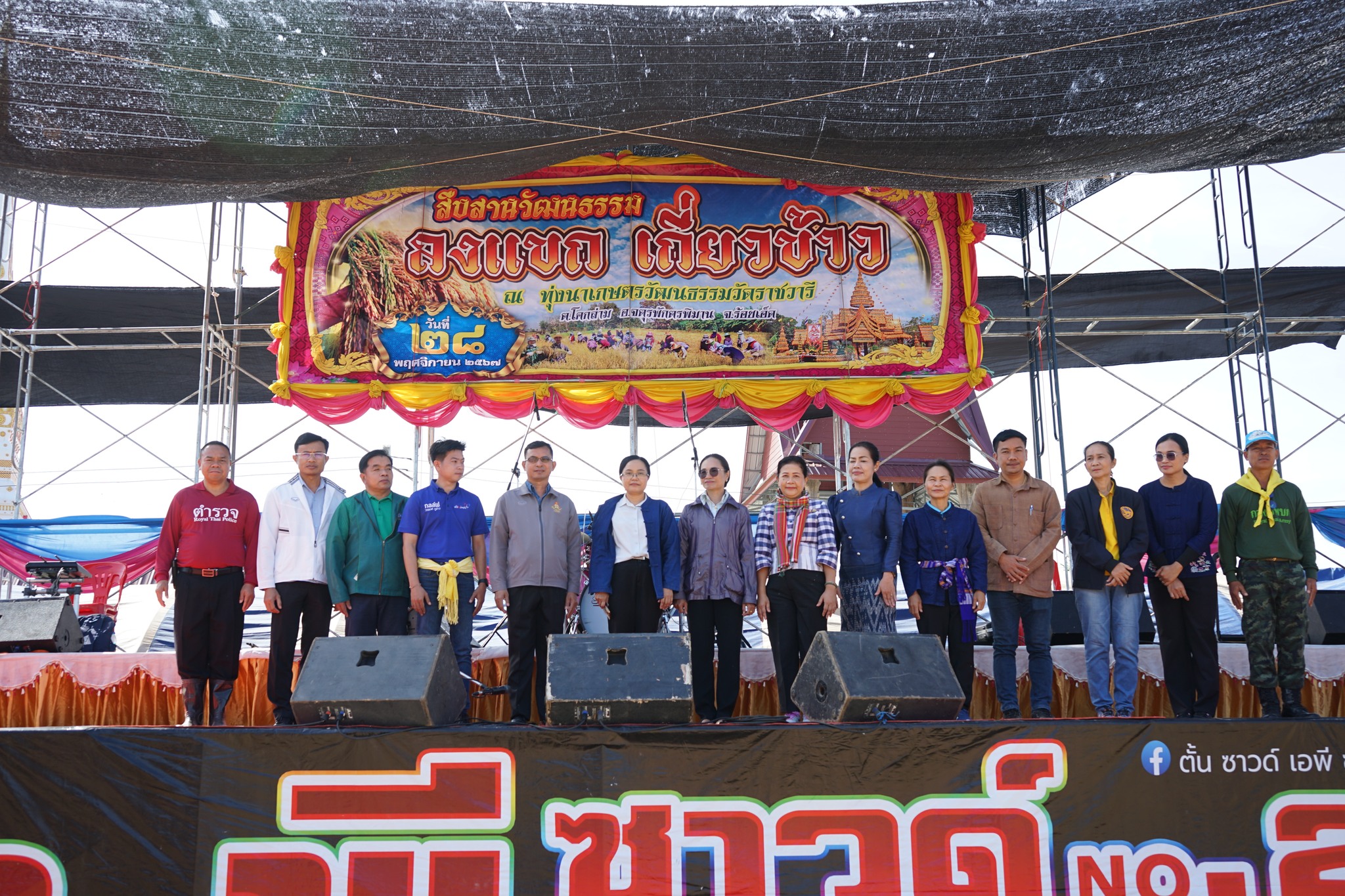 28 พ.ย. 67 เวลา 09.00 น. พ.ต.อ.ณภัทรพงศ์ สมใจ ผกก.สภ.จตุรพักตรพิมาน, พ.ต.ท.ไพศาล เขมะรัง รอง ผกก.ป.ฯ, พ.ต.ต.อาทิตย์ พัฒนสระคู สว.(ชส.)ฯ นำข้าราชการตำรวจ สภ.จตุรพักตรพิมาน ร่วมสืบสานประเพณีวัฒนธรรมลงแขกเกี่ยวข้าว ณ วัดราชวารี ต.โคกล่าม อ.จตุรพักตรพิมาน จ.ร้อยเอ็ด โดยมี ร.ต.อ.หญิง อรุณี อินทรมณี นายอำเภอจตุรพักตรพิมาน ประธานในพิธี