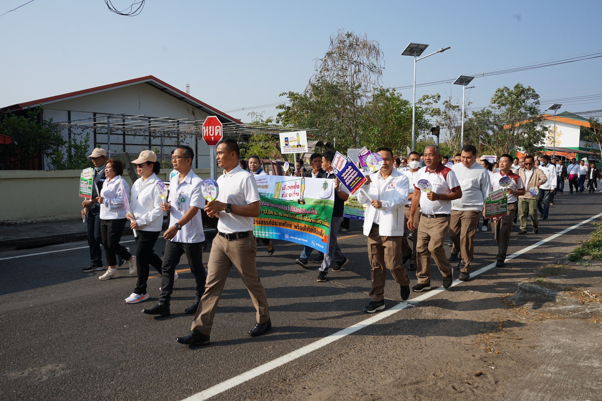 ข้าราชการตำรวจ สภ.จตุรพักตรพิมาน ร่วมกิจกรรมเดินรณรงค์ประชาสัมพันธ์เชิญชวนไปใช้สิทธิเลือกตั้ง ส.อบจ. (Blg Day)
