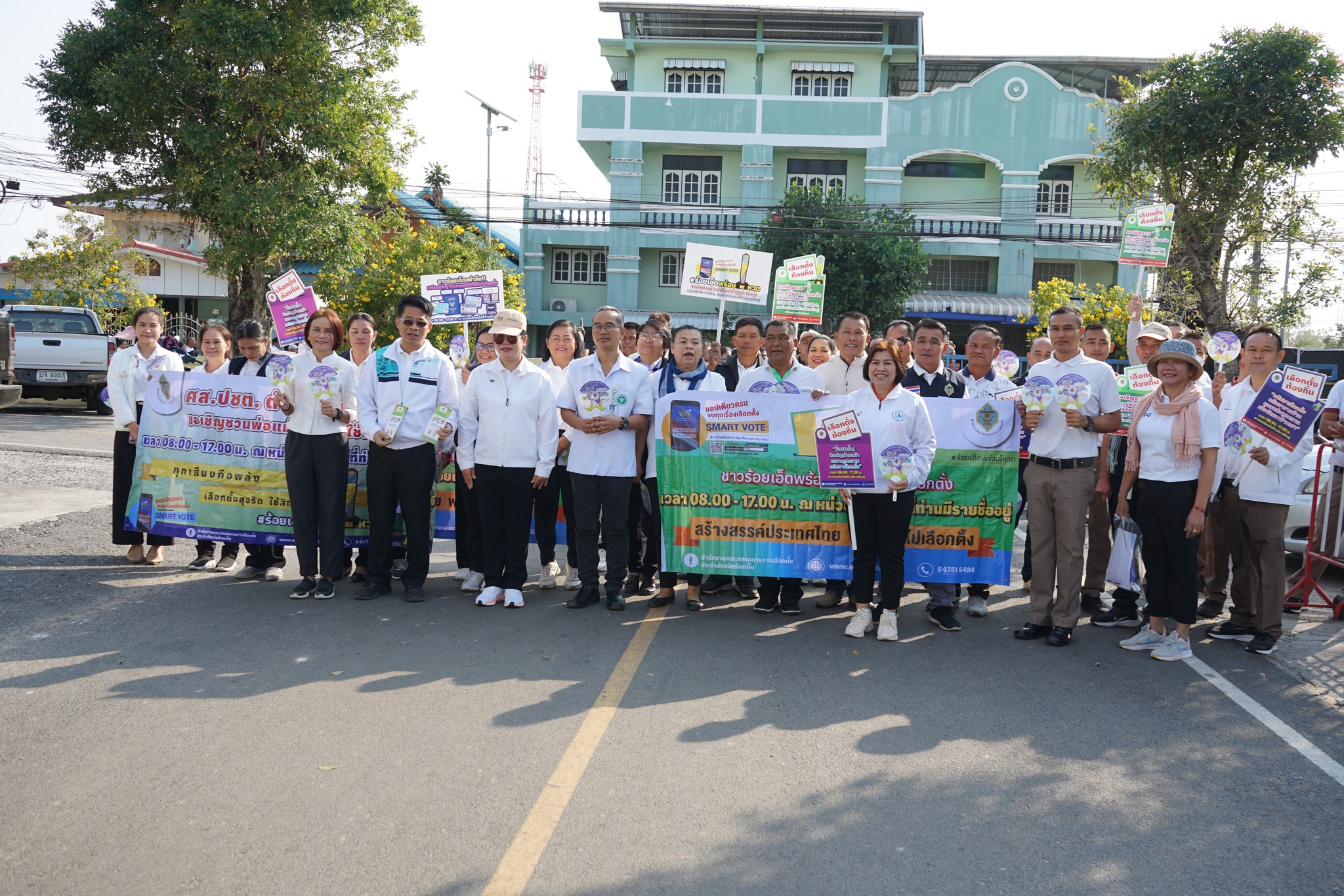 วันที่ 28 ม.ค. 68 เวลา 08.30 น. พ.ต.อ.ณภัทรพงศ์ สมใจ ผกก.สภ.จตุรพักตรพิมาน พ.ต.ท.ไพศาล เขมะรัง รองผกก.ป.ฯ พ.ต.ท.ธณัฐพงษ์ ภูมิภาค สวป.ฯ พ.ต.ต.อาทิตย์ พัฒนสระคู สวป.ชส.ฯ พร้อมด้วยข้าราชการตำรวจ สภ.จตุรพักตรพิมาน ร่วมกิจกรรมเดินรณรงค์ประชาสัมพันธ์เชิญชวนไปใช้สิทธิเลือกตั้ง ส.อบจ. (Blg Day) แสดงสัญลักษณ์การออกไปใช้สิทธิ์ลงคะแนนออกเสียงเลือกตั้ง “ร้อยเอ็ดพร้อมโหวต” โดยมีนางละอองเพชร พุฒิพัฒน์พาณิชย์ นายอำเภอจตุรพักตรพิมาน เป็นประธาน