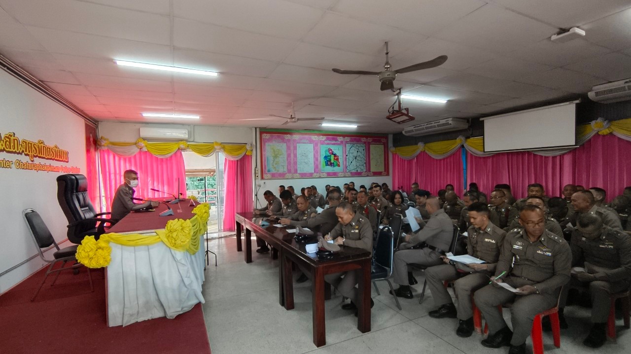 พ.ต.อ.สุริเดช วรรณสุทธิ์ รอง ผบก.ภ.จว.ร้อยเอ็ด ได้มาตรวจประเมินการบริหารงานของหัวหน้าสถานี ณ ห้องประชุม สภ.จตุรพักตรพิมาน