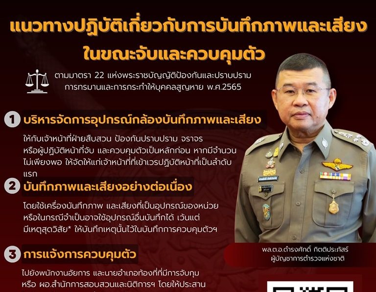 แนวทางการปฏิบัติเกี่ยวกับการบันทึกภาพและเสียงในขณะจับและควบคุมตัวฯ 4 ธันวาคม 2022 16:55 พล.ต.อ.ดำรงศ