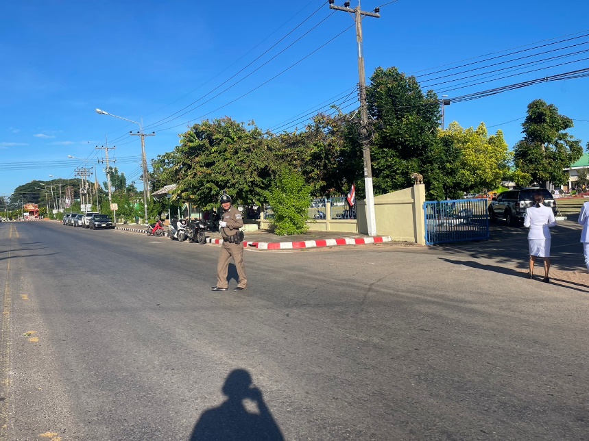 ร.ต.อ.วิทยา เหล่ายนขาม รอง สว.จร.สภ.จตุรฯ พร้อมชุดจราจร อำนวยความสะดวกการจราจร งานพิธีถวายราชสักการะ