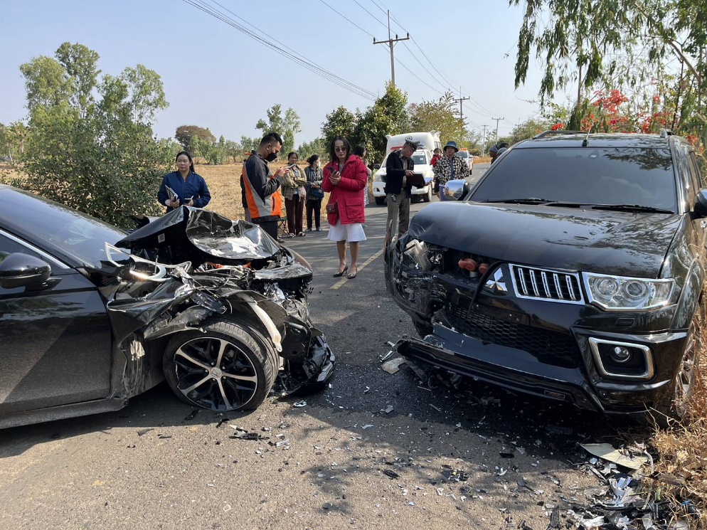 ร.ต.อ.มานพ เจริญภักดี รอง สว.(สอบสวน)สภ.จตุรพักตรพิมาน พร้อมดัวยผู้ช่วยพนักงานสอบสวน ได้เดินทางไปตรวจที่เกิดเหตุอุบัติเหตุรถกระบะชนรถเก๋ง