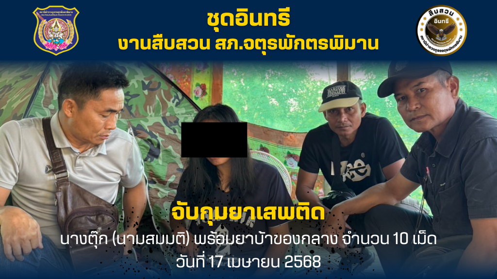 ชุดอินทรี สืบสวน สภ.จตุรพักตรพิมาน จับกุมผู้ต้องหายาเสพติดนางตุ๊ก (นามสมมติ) พร้อมยาบ้าของกลาง จำนวน