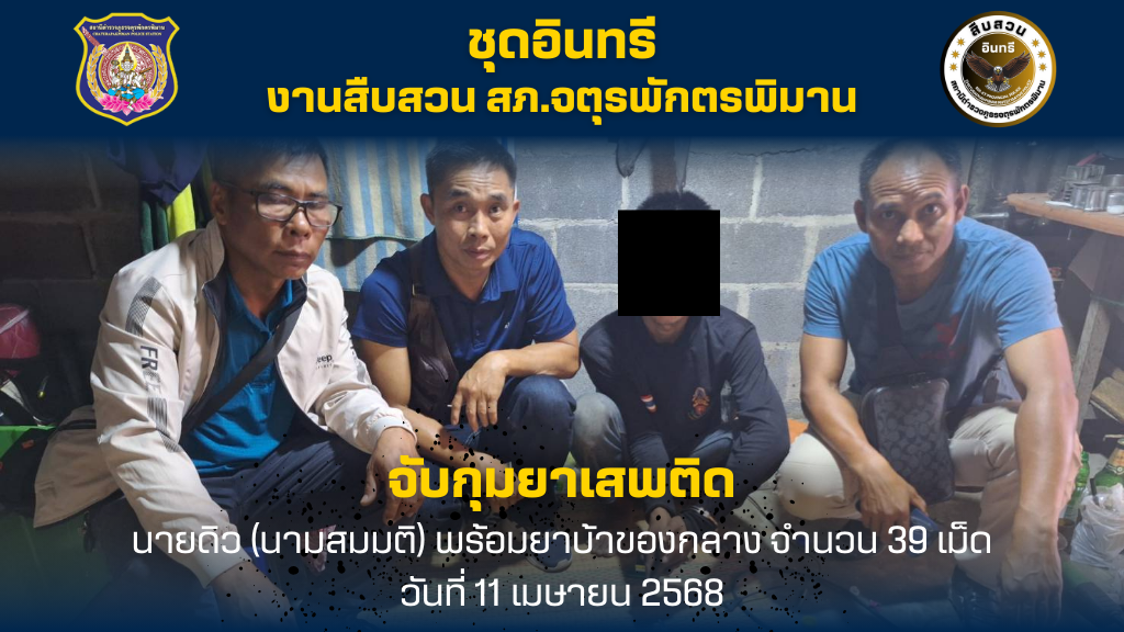 ชุดอินทรี สืบสวน สภ.จตุรพักตรพิมาน จับกุมผู้ต้องหายาเสพติดนายดิว (นามสมมติ) พร้อมยาบ้าของกลาง จำนวน