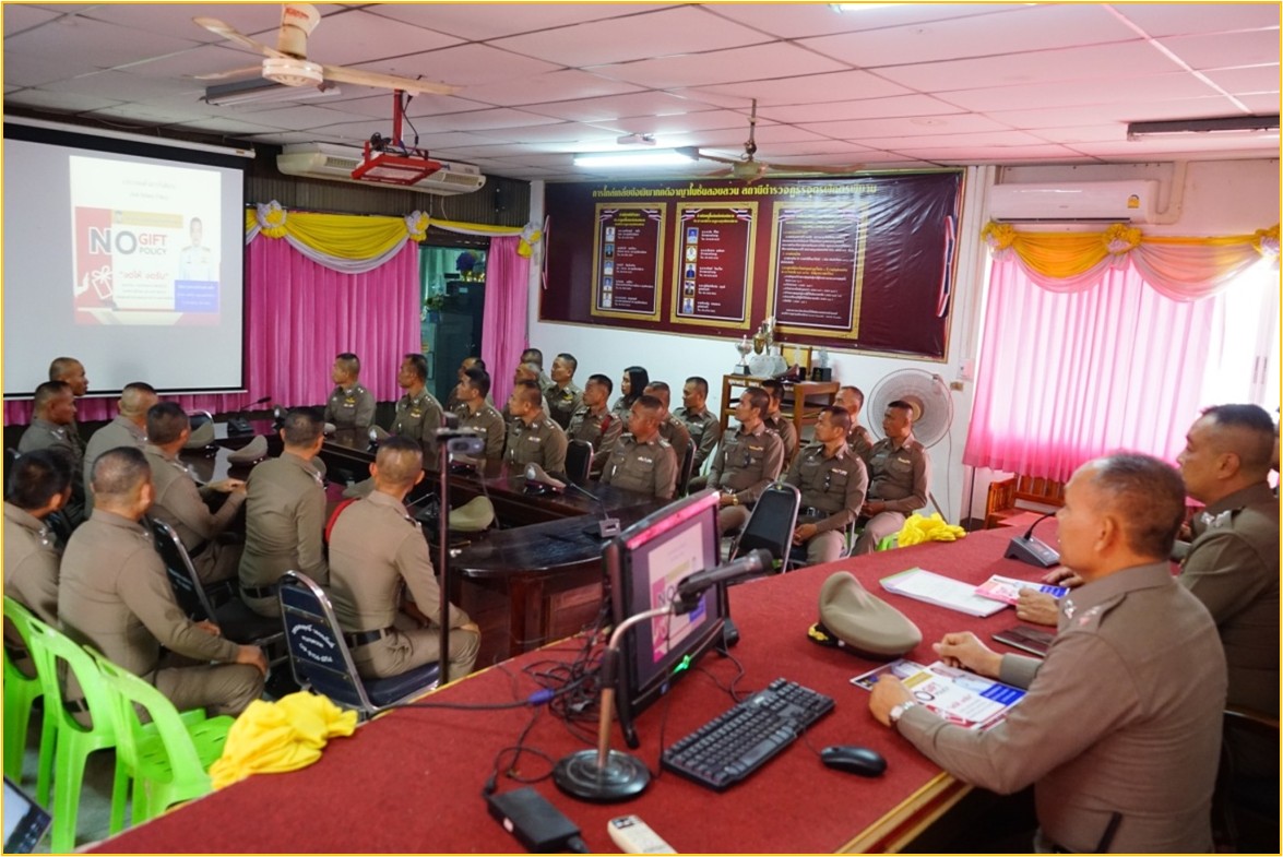 พ.ต.อ.ณภัทรพงศ์ สมใจ ผกก.สภ.จตุรพักตรพิมาน ประชุมชี้แจงรายละเอียดการปฏิบัติงานการประเมินคุณธรรมและคว